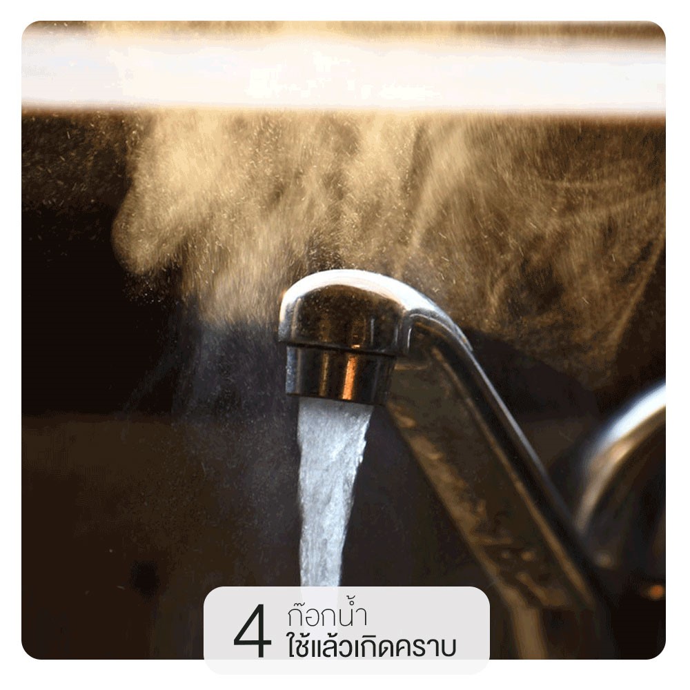 4. ก๊อกน้ำใช้ไปแล้วเกิดคราบ ทำยังไงดี ควรเลือกใช้ก๊อกที่ทำมาจากวัสดุชุบโครเมี่ยมอย่างดีนอกจากใช้งานได้ดีแล้ว ยังเงางามตลอดการใช้งาน