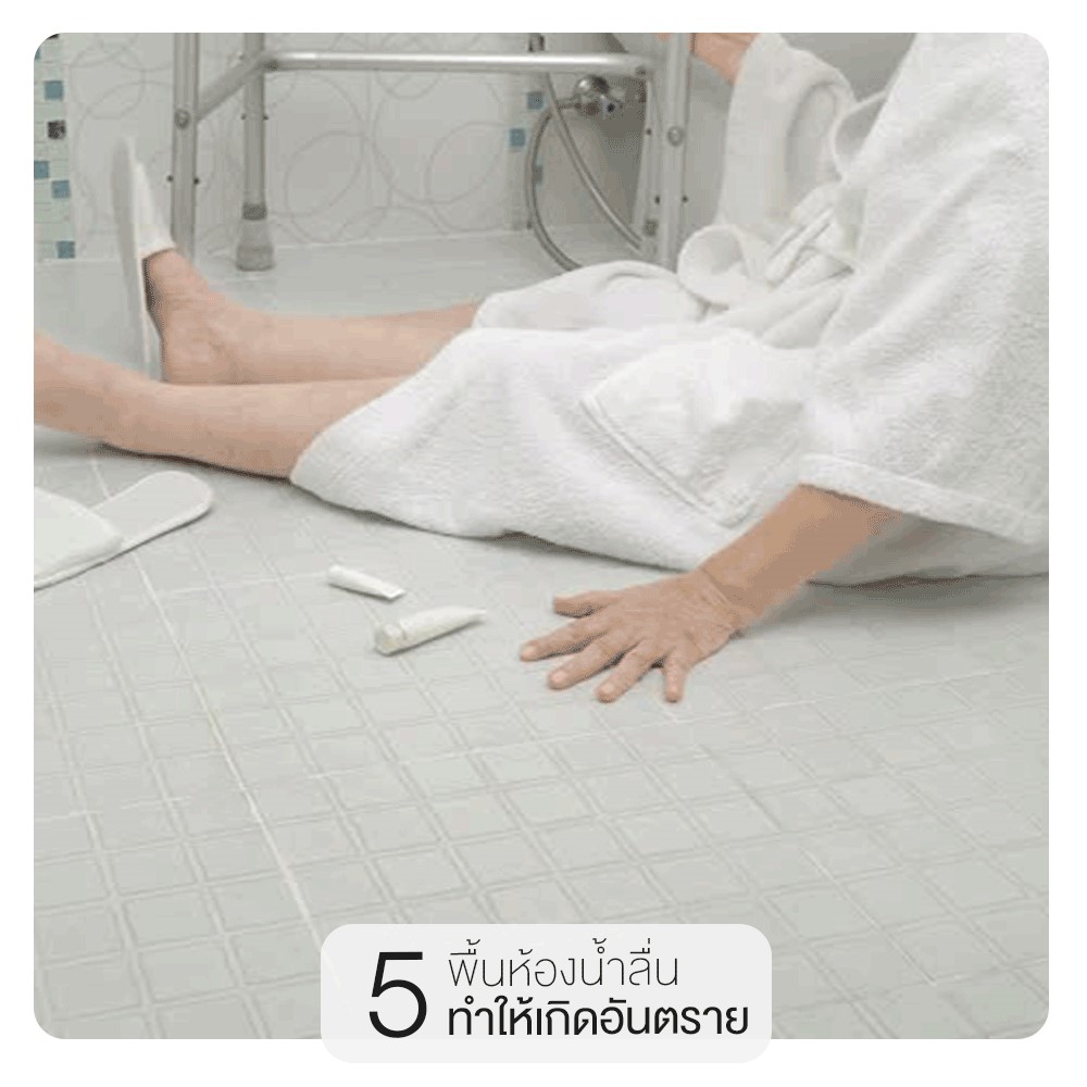 5. พื้นห้องน้ำลื่นอาจทำให้เกิดอันตราย เรื่องนี้สำคัญต่อความปลอดภัยในชีวิตมาก นอกจากการเลือกใช้กระเบื้องให้เหมาะสมสำหรับปูพื้นห้องน้ำแล้ว ควรหาราวจับเพื่อช่วยในการทรงตัว หากเกิดอุบัติเหตุลื่นขึ้นมา จะได้มีที่ยึดจับได้ทันเวลา