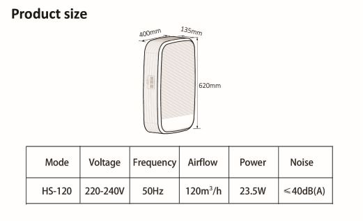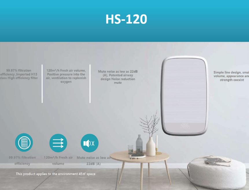 ข้อมูลของเครื่องฟอกอากาศติดผนัง รุ่น HS-120 :
