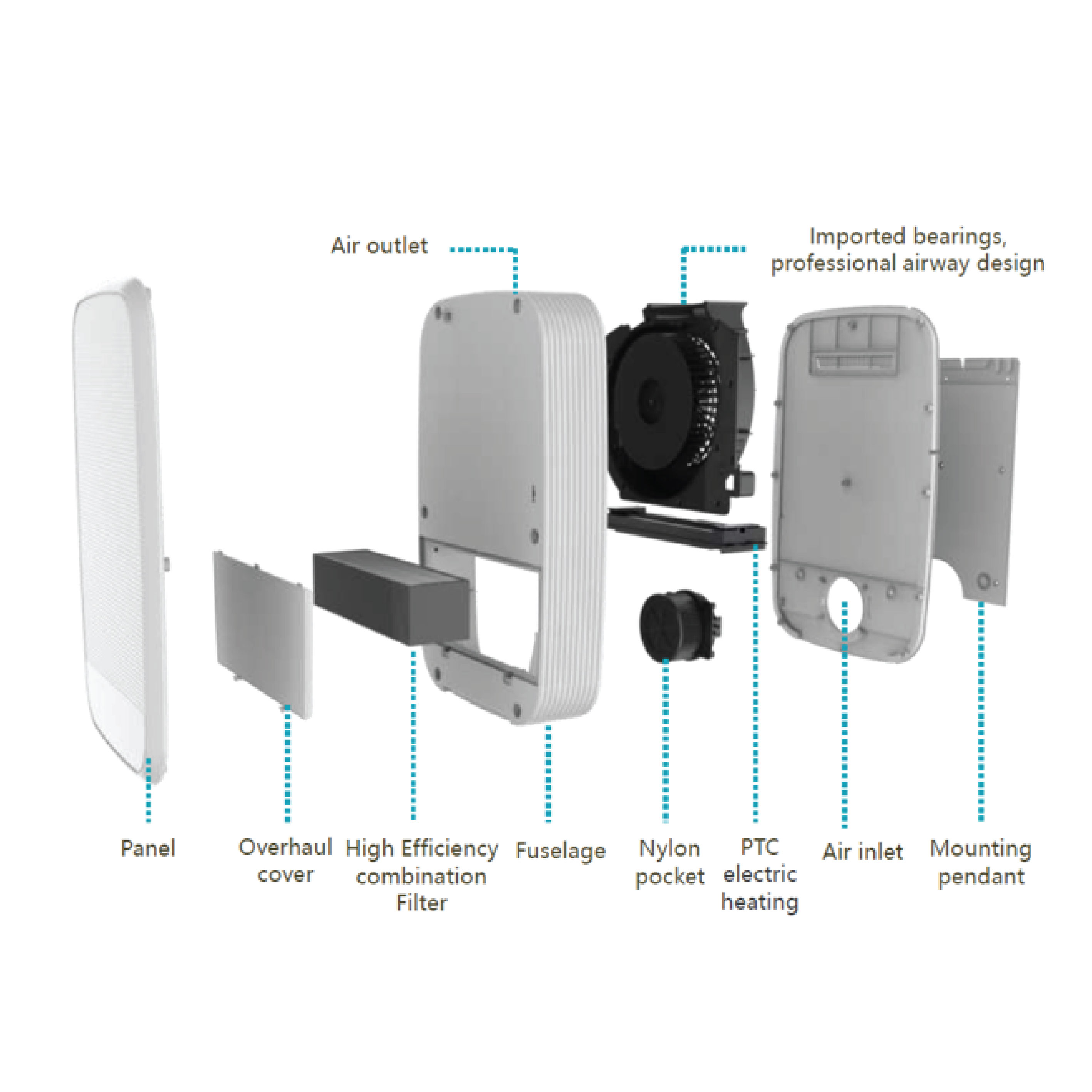 ส่วนประกอบต่าง ๆ ของเครื่องฟอกอากาศติดผนัง รุ่น HS-120 :