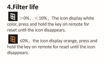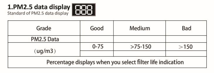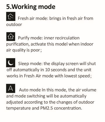 Sleep mode : ไอคอนนี้จะดับลงแบบอัตโนมัติภายใน 10 วินาที และเครื่องจะทำงานในโหมด Fresh air mode ด้วยความเร็วต่ำสุด