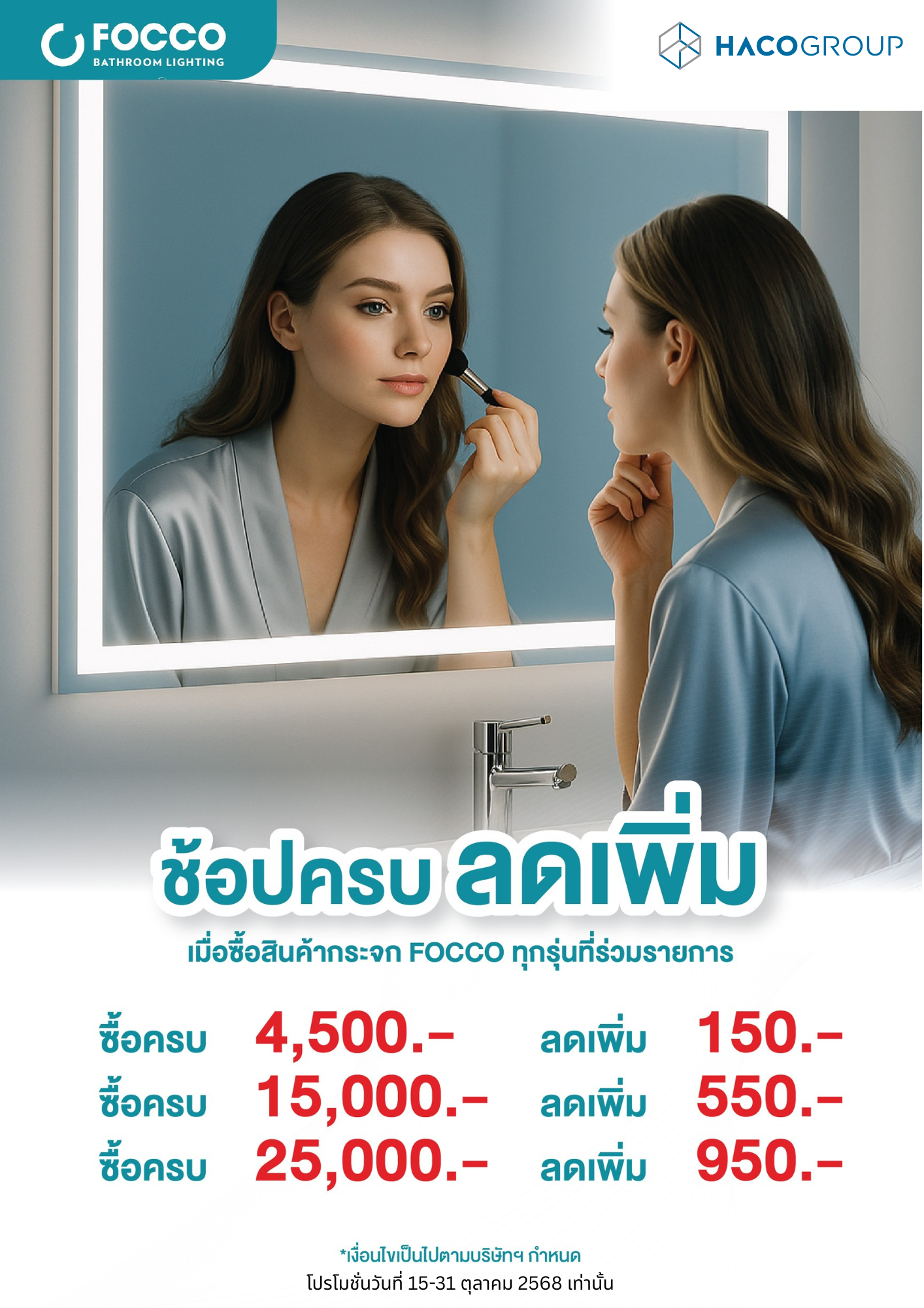 เมื่อซื้อสินค้ากระจก Focco ที่ร่วมรายการ รับส่วนลดเพิ่ม*